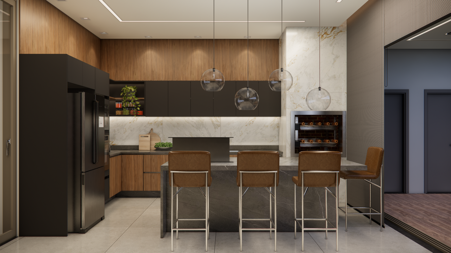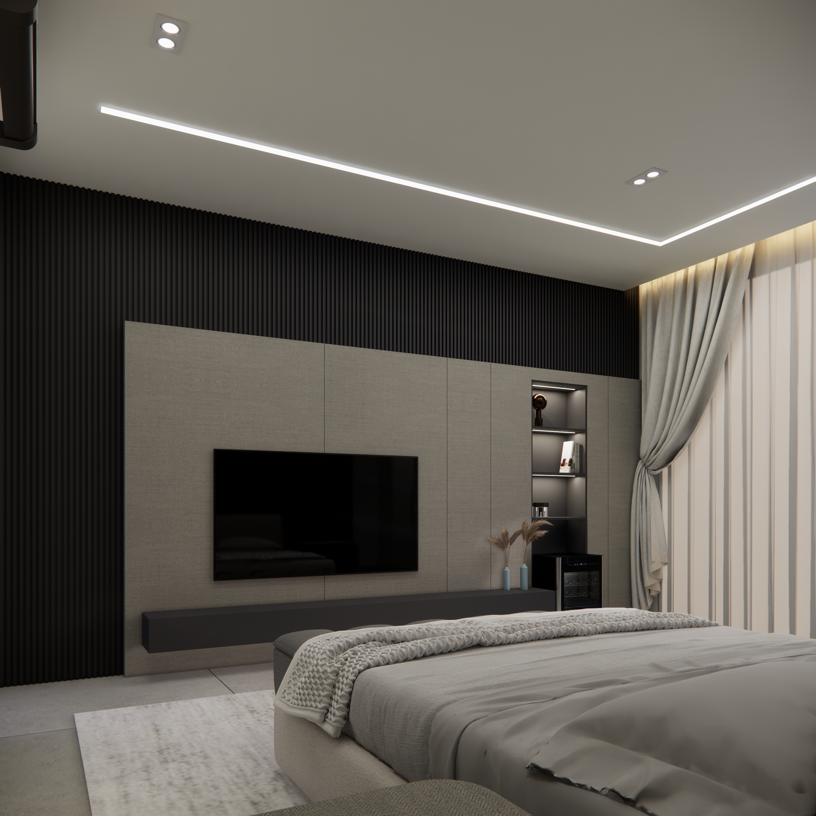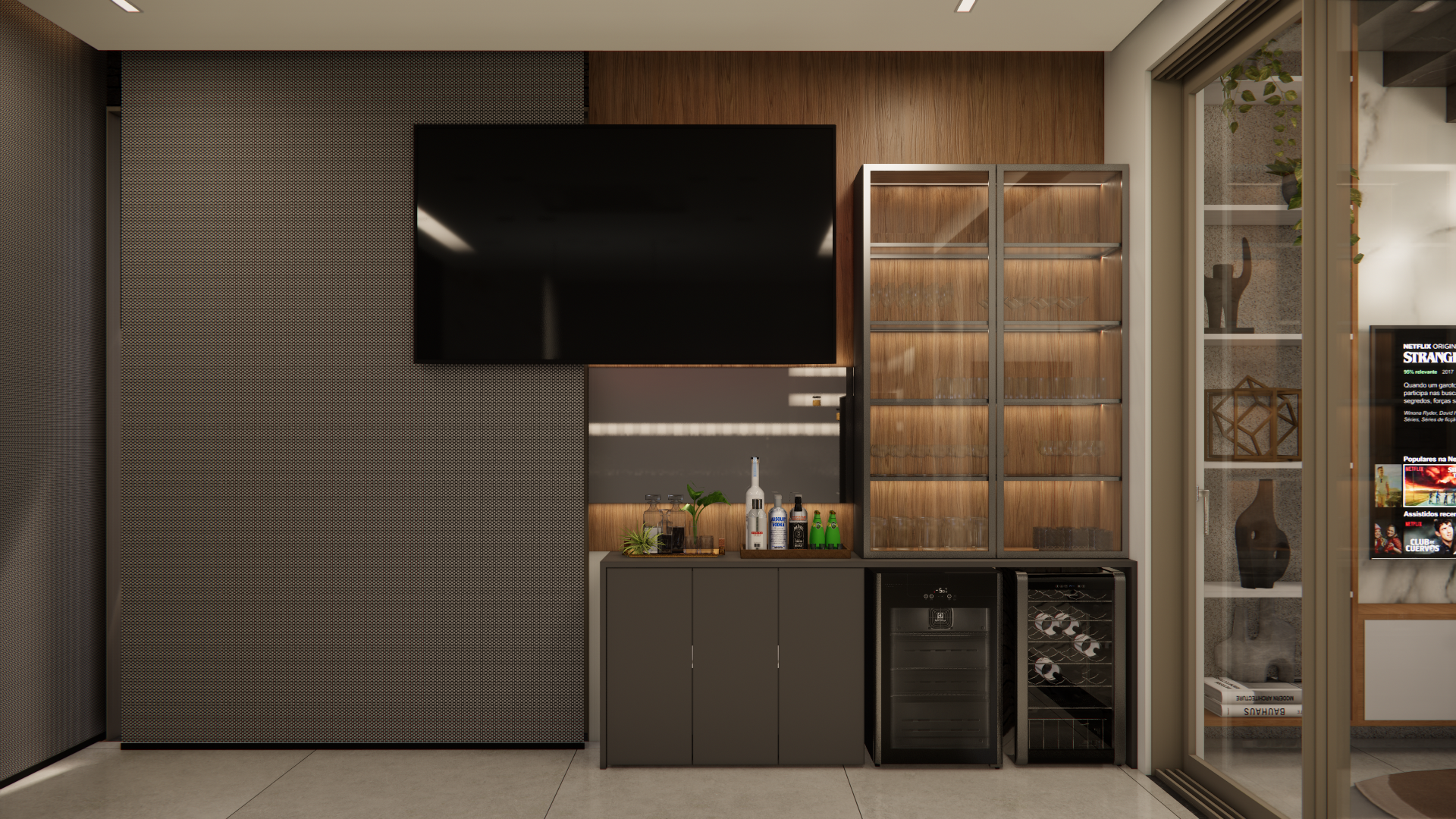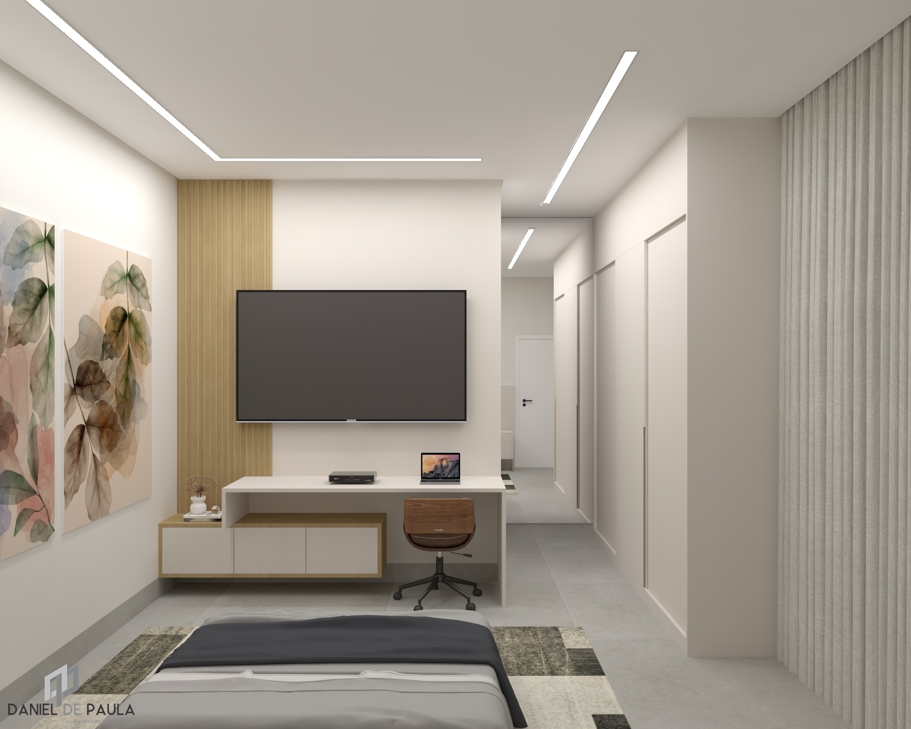 O projeto residencial foi desenvolvido com foco em criar um ambiente acolhedor e familiar, utilizando materiais claros e amadeirados para transmitir uma sensação de conforto e bem-estar. Com a intenção de destacar a importância da convivência familiar, foram projetados ambientes amplos e aconchegantes que facilitam a interação e a recepção de convidados. Ao entrar na casa, a visão é imediatamente atraída para a área de lazer, onde a piscina com uma elegante cascata se destaca, criando um ponto focal visualmente impressionante. A área gourmet adjacente complementa o espaço, proporcionando um ambiente perfeito para encontros e celebrações em família.