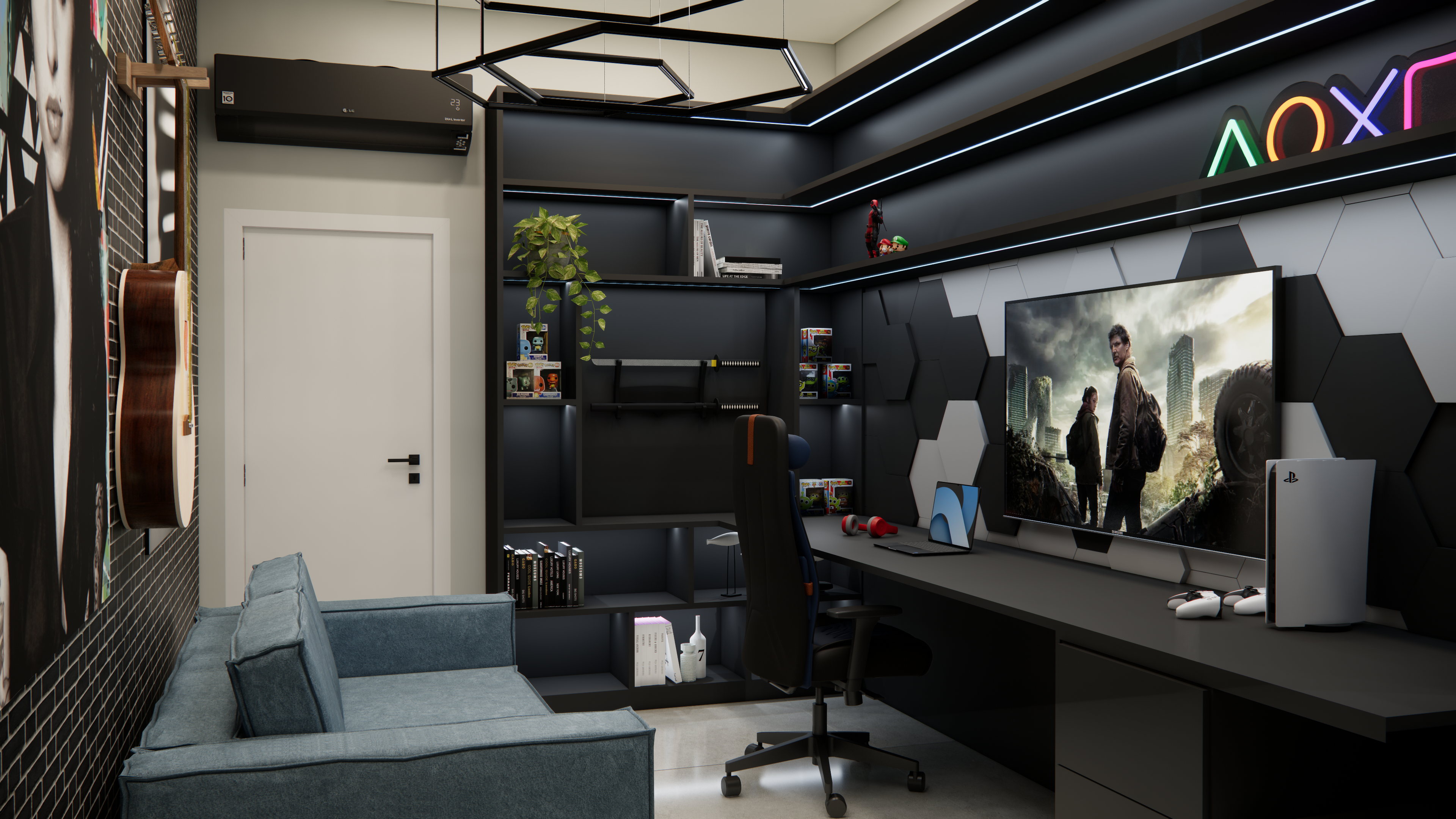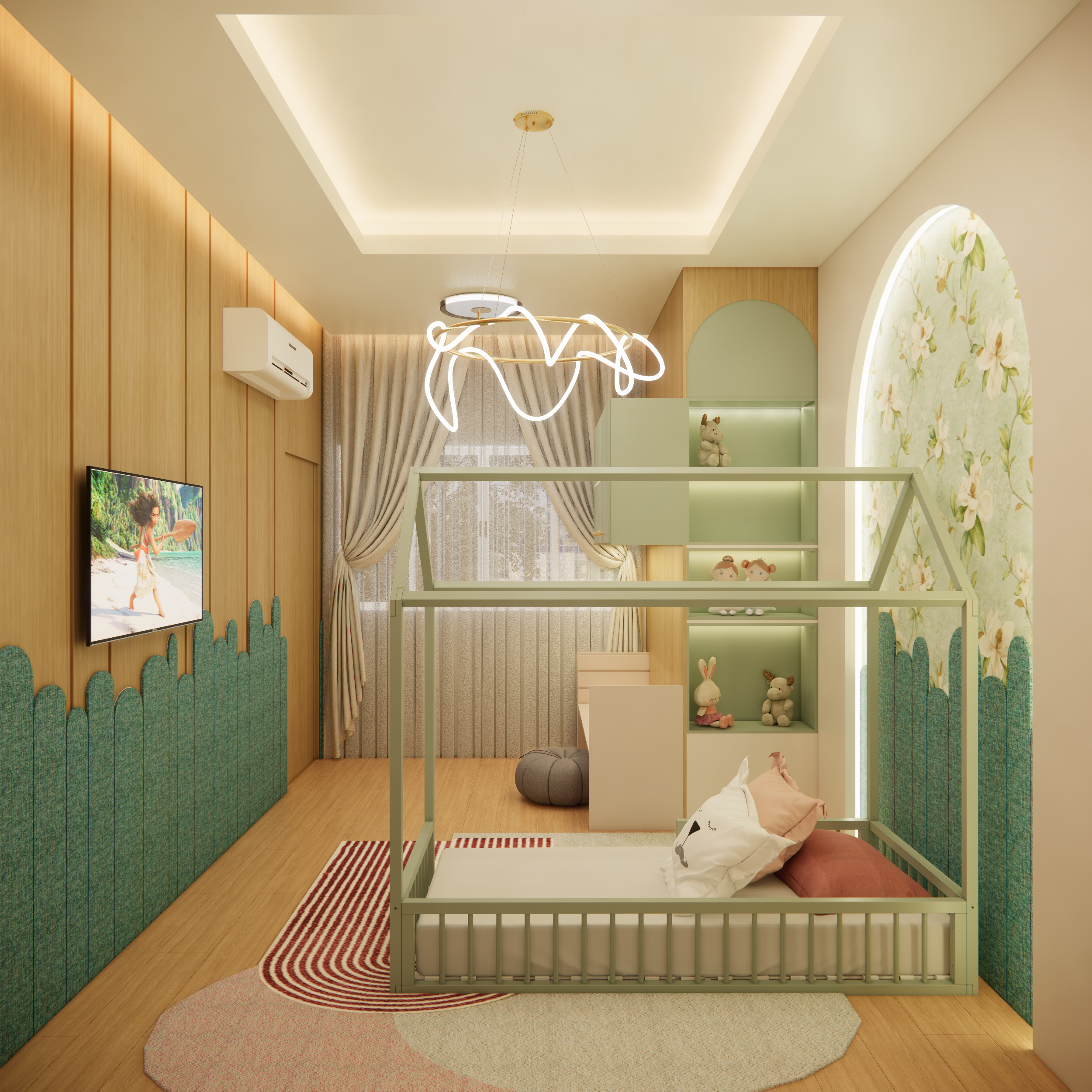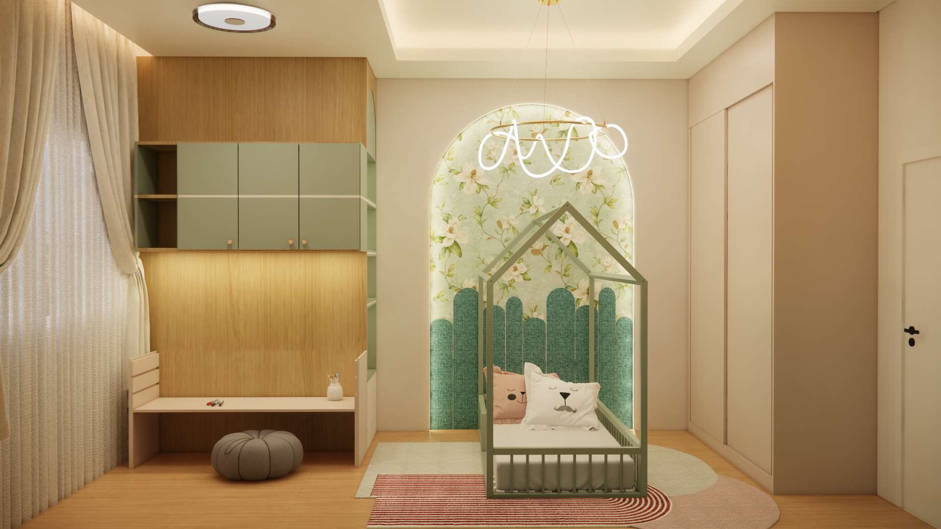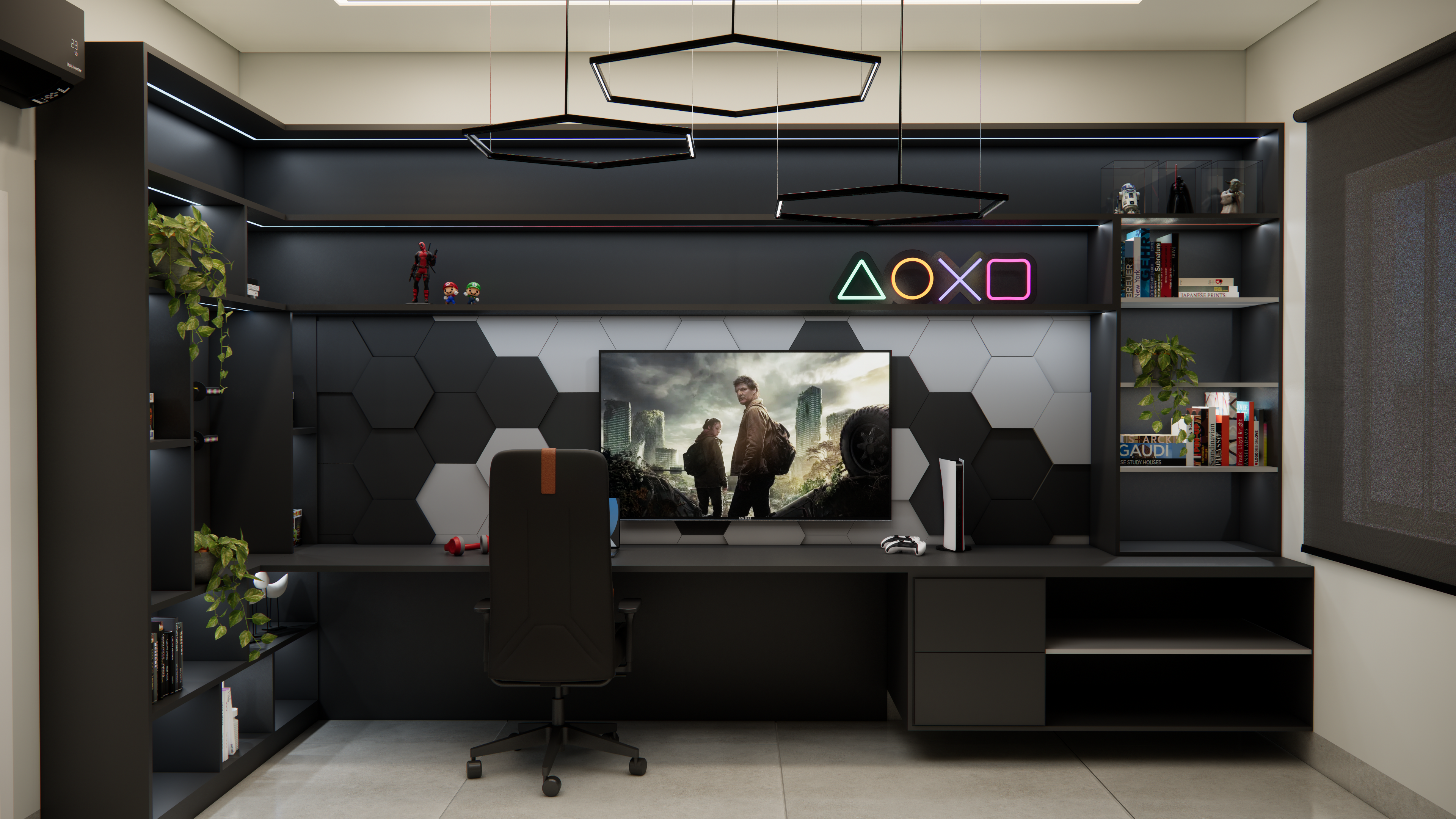 O projeto residencial foi desenvolvido com foco em criar um ambiente acolhedor e familiar, utilizando materiais claros e amadeirados para transmitir uma sensação de conforto e bem-estar. Com a intenção de destacar a importância da convivência familiar, foram projetados ambientes amplos e aconchegantes que facilitam a interação e a recepção de convidados. Ao entrar na casa, a visão é imediatamente atraída para a área de lazer, onde a piscina com uma elegante cascata se destaca, criando um ponto focal visualmente impressionante. A área gourmet adjacente complementa o espaço, proporcionando um ambiente perfeito para encontros e celebrações em família.