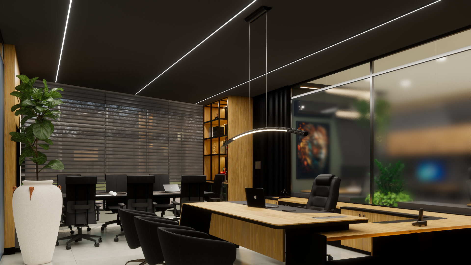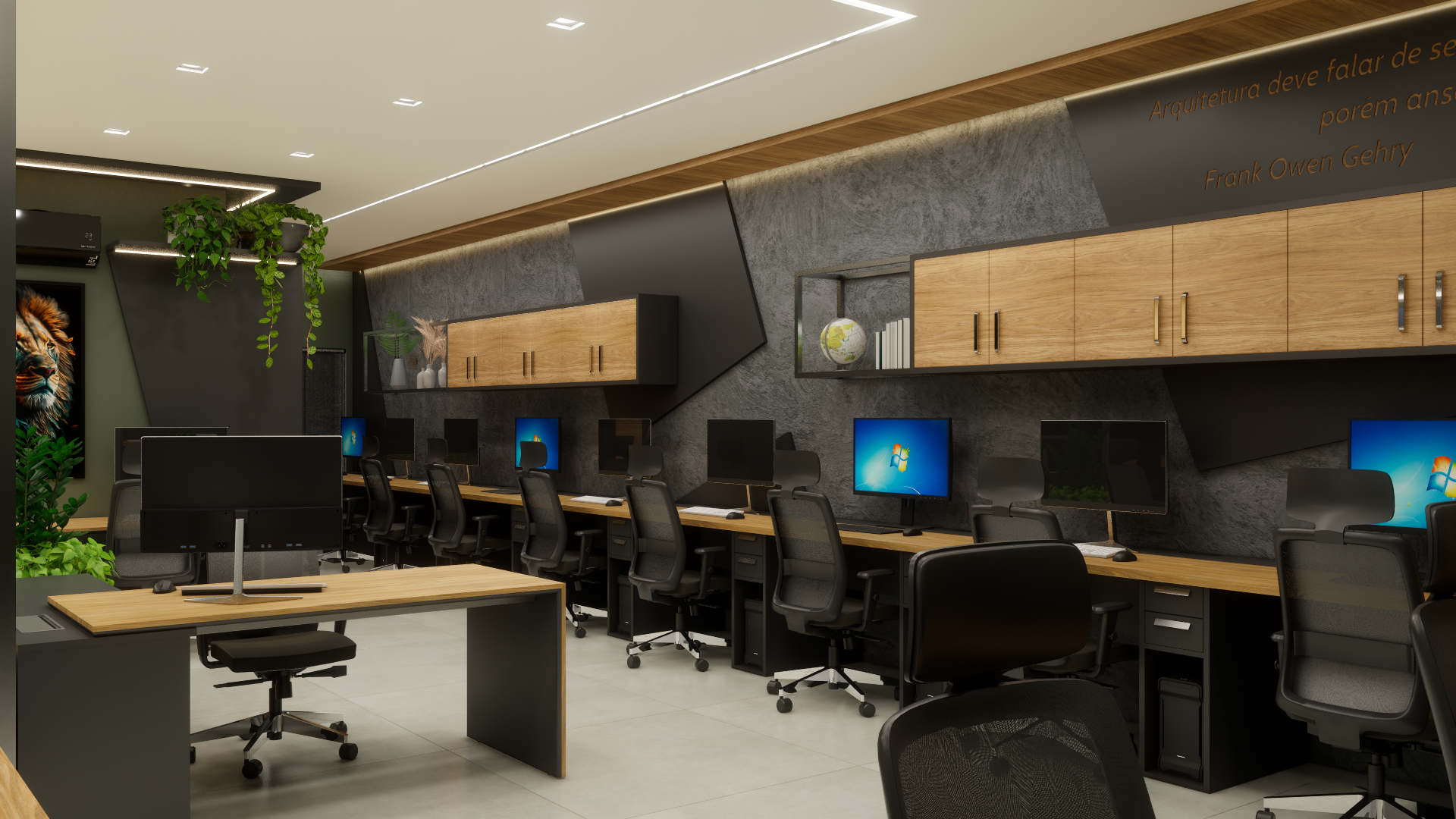 O projeto do escritório de arquitetura fundado por Daniel de Paula, atuante no setor da construção civil desde 2009, reflete os valores de inovação, solidez e personalização que têm guiado a empresa ao longo dos anos. Com uma abordagem focada em conceitos atemporais, o espaço foi projetado para transmitir segurança e confiança aos clientes, reforçando a credibilidade do escritório. Materiais duradouros e um design elegante foram combinados para criar um ambiente que inspira estabilidade. Além disso, o layout foi cuidadosamente planejado para estimular a criatividade e promover a colaboração entre a equipe, criando um espaço onde a inovação e a união se encontram.